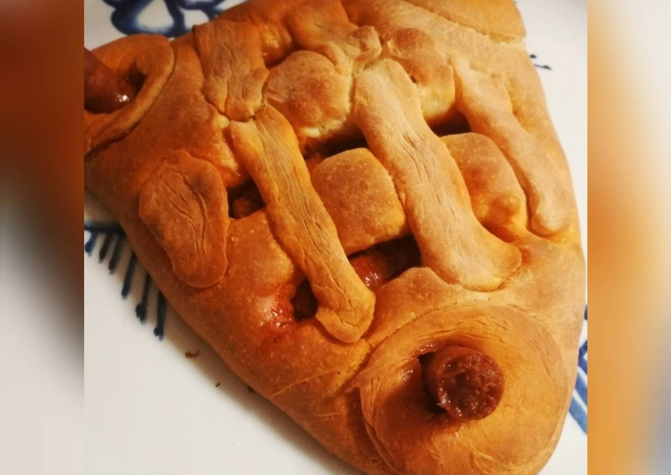 - Hacer cortes transversales y colocar el chorizo. Tapar con el trozo de masa que teníamos reservado.