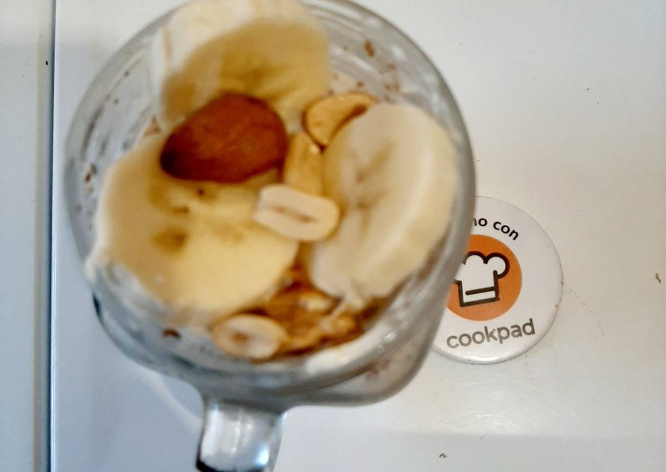 - Revuelve todo tapa y mete a refrigerador toda la noche o por 5 horas. Saca del refri agrega 1 cucharada de crema de maní, 1/2 plátano unas almendras bate y listo.