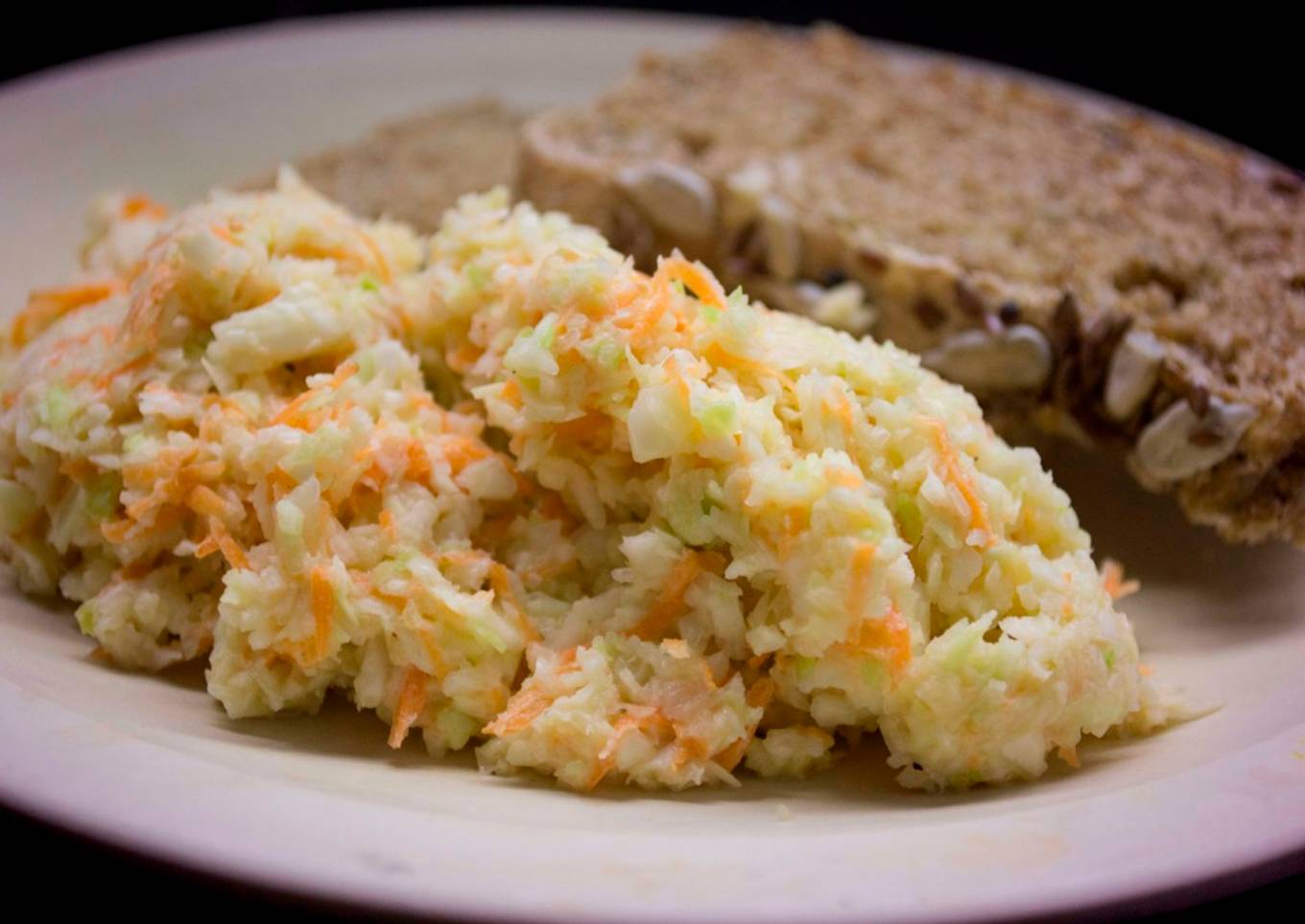 - En otro recipiente o en el mismo mezclar la col, zanahoria, cebolla, mezclar con el aderezo y listo.