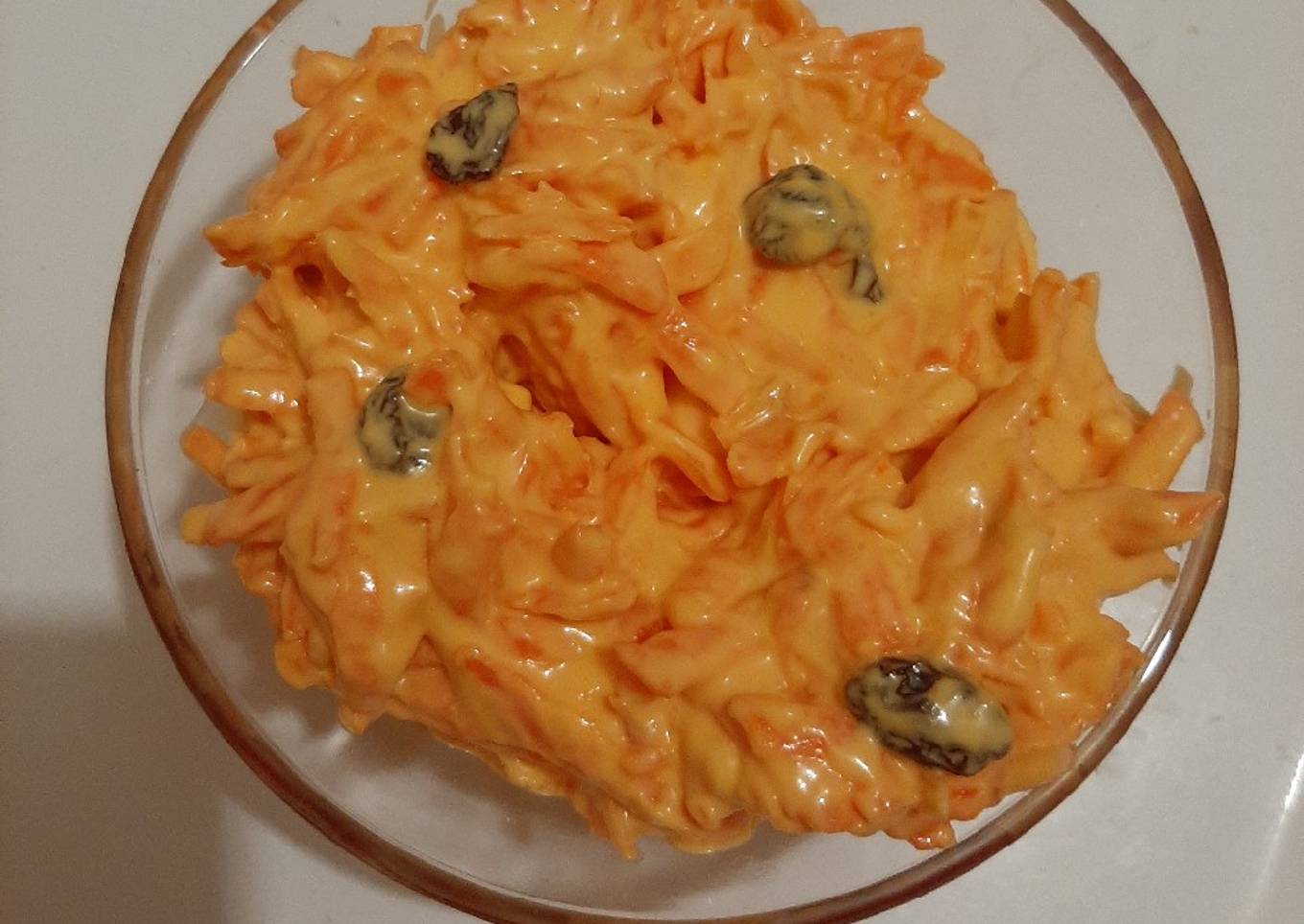 - Pela y ralla la zanahoria, agrega la mayonesa, crema, lechera, pasas mostaza, pizca de sal.