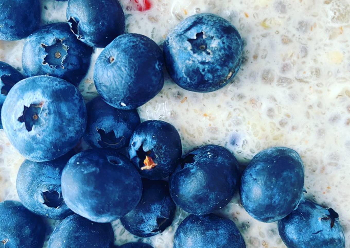- 1/4 taza arándanos frescos (otras opciones: fresa, plátano con crema de cacahuate, mango, etc.)