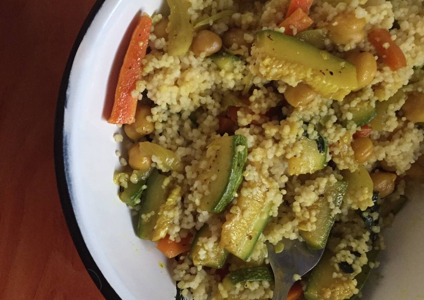 - Mover y cocer todas las verduras mezcladas con las especias, posteriormente agregar cous cous y listo!!