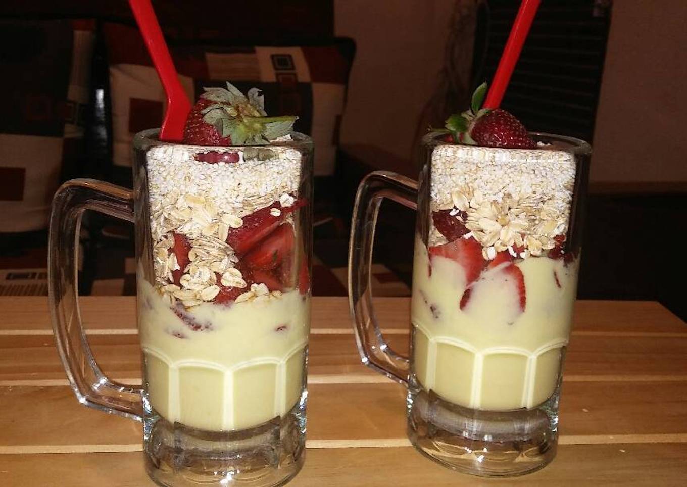 - Coloca las fresas partidas por mitad o picadas y finalmente agrega dos cucharadas de avena entera o granola. También puedes agregar amaranto y miel si quieres dar un toque más dulce.