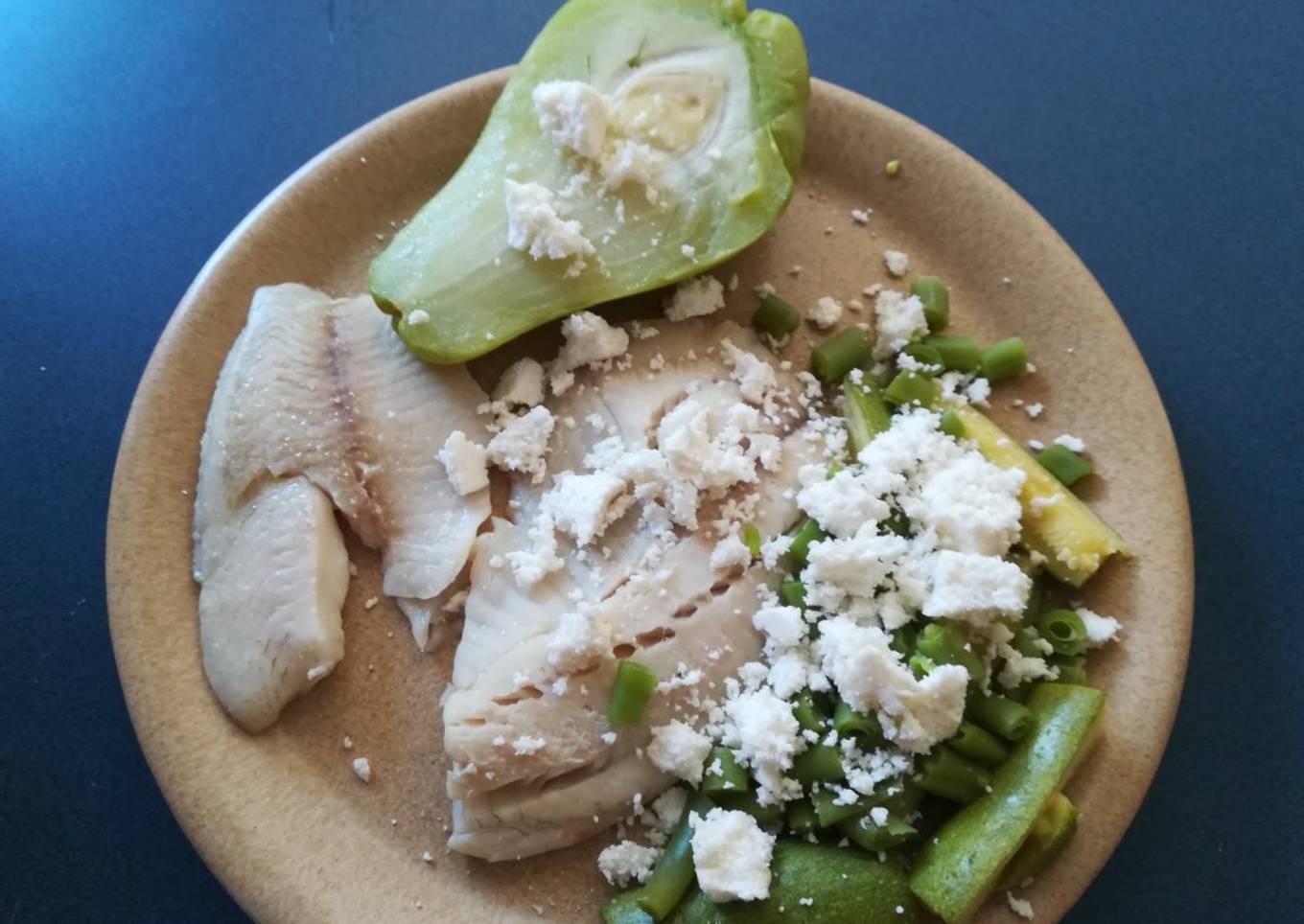 - Sirve el pescado con las verduras y espolvorea el queso fresco.