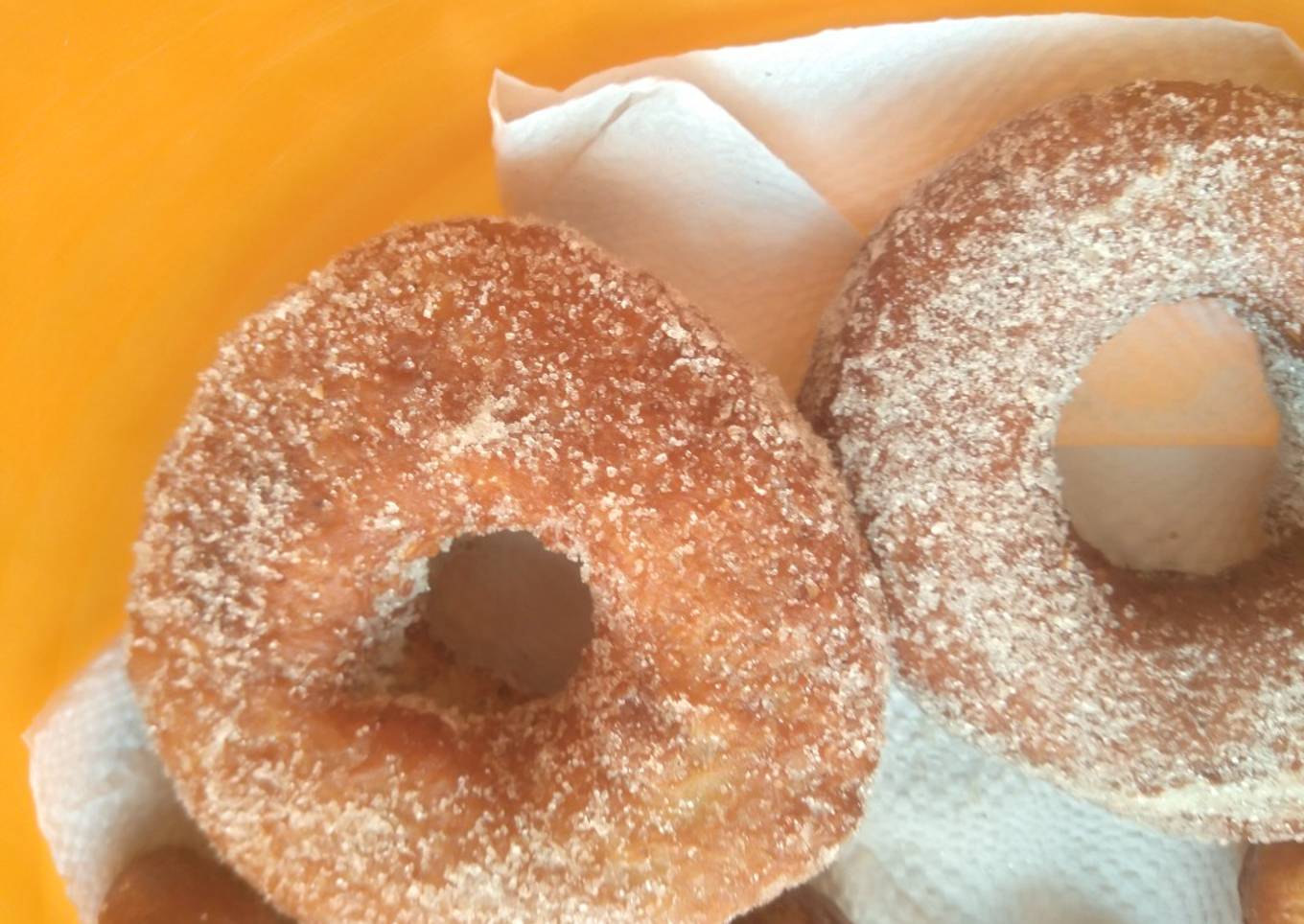- Dejamos en el aceite por 5 min de cada lado en fuego medio bajo, Sacamos del aceite, escurrimos y pasamos a el azúcar. En lo personal me gusta mezclar con canela... Espolvoreamos y listo...